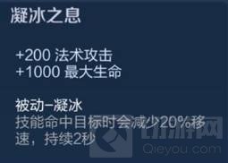 第三件装备是凝冰之息,凝冰之息的被动效果可以降低敌方的移动速度。