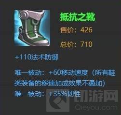 第二件装备是抵抗之靴,抵抗之靴会增加35%韧性,可以大大地降低被控的时间。