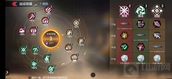 2. 远征祝福:提升远征等级可以获得祝福之力,消耗祝福之力提升远征祝福等级,每提升1级远征祝福可从随机6个祝福中任选1个,同一类祝福累计足量等级可获得额外强力技能或道具。远征等级满级是150级,15个远征祝福天赋,每个最高等级10级,所以每个天赋都是可以升满的,右边的奖励也都是可以拿到的,不存在必须放弃的奖励。
