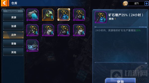 可以增加25%的各类资源产量。这类道具获得方式较为简单,每日活动即可获取,并且联盟内其他玩家购买礼包所奖励的宝箱也能获取到可观数量的增产道具,是每天必要开启的道具之一