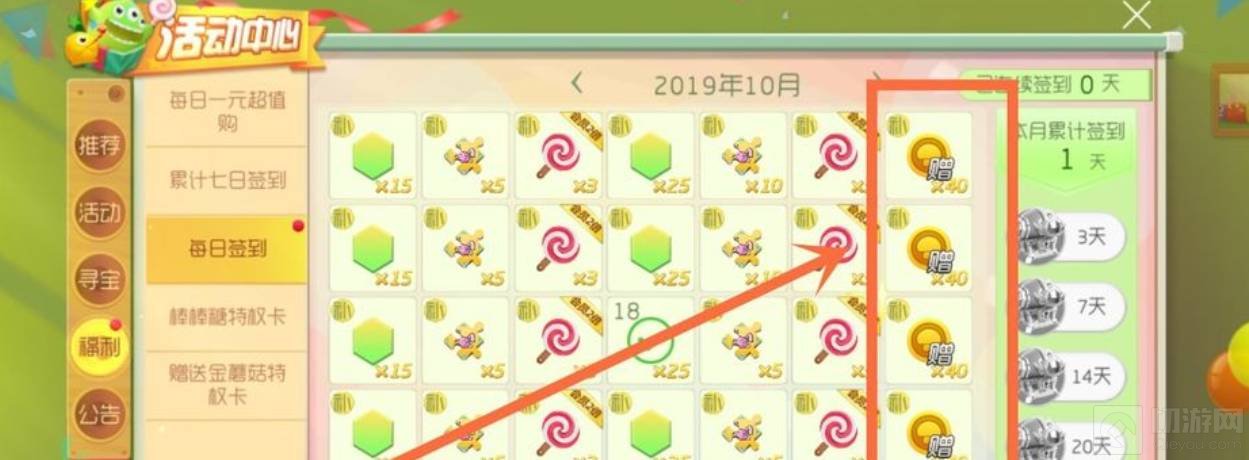 1.通过每日签到可以获得金蘑菇,每个月四次机会,一次40个金蘑菇。