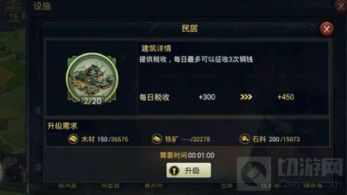 选择需要升级的科技,并在弹出的界面点击“升级”,资源足够即可升级此项科技。科技升级一旦完成,获得的资源产量加成或战斗力加成会立即生效,升级达到满级,还会激活技能。如升级“仓库”,那么玩家拥有的资源上限马上就会提升,仓库一旦升级到满级,还可以获得技能“税收+1000”。