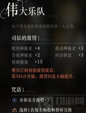 伟大乐队:全友方激情+1(cost-30每次增加20消耗)换人(cost-50)