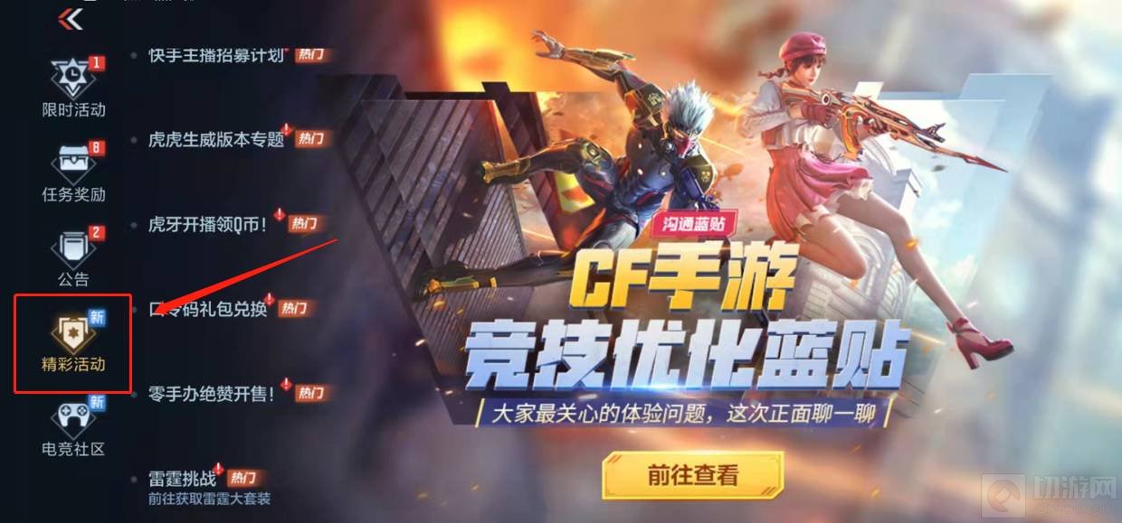 2. 第二步:在左侧菜单栏下滑,找到“精彩活动”并点击。