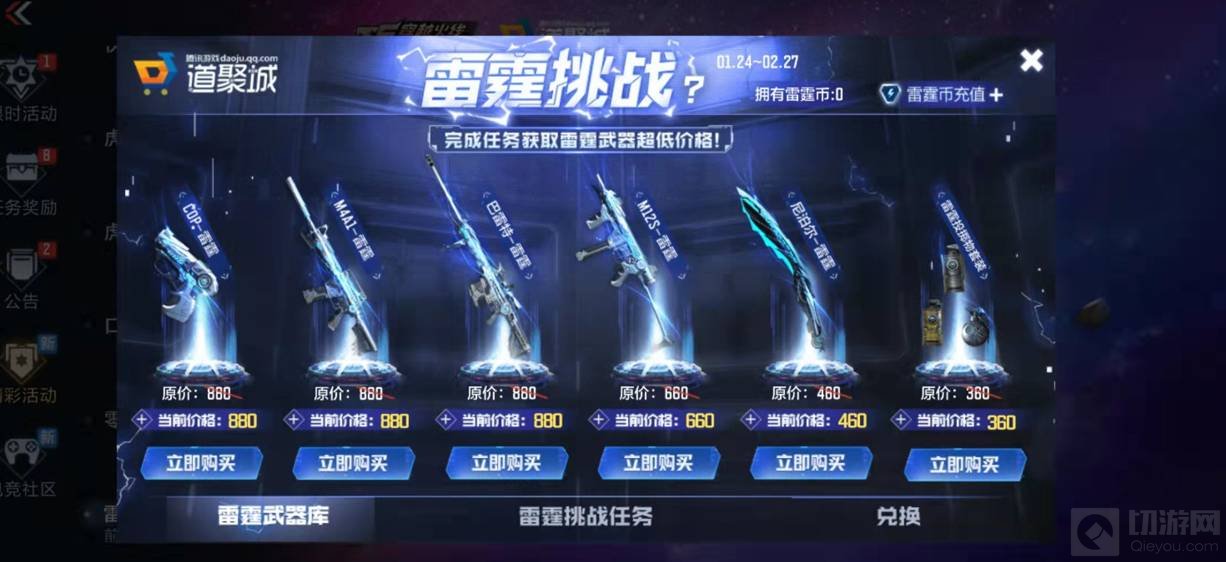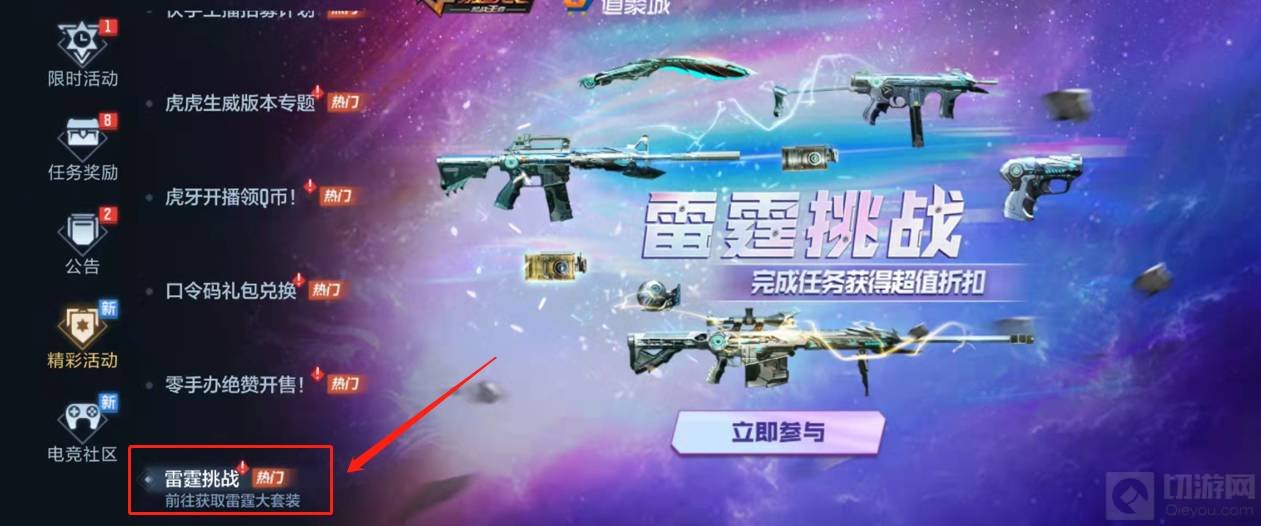 3. 第三步:在精彩活动右侧出现的菜单栏中下拉至最后,即可看到“雷霆挑战”任务入口,任务界面如下: