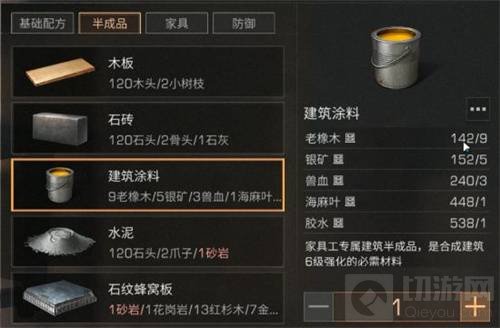 1、制作。需要由特级家具工制作。建筑涂料制作需要老橡木9个、银矿5个、兽血3个、海麻叶1个、胶水1个。