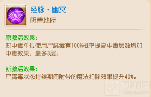 但在幽冥经脉的全新激活效果下,原本尸腐毒可以叠加层数的设定被取消,取而代之的是直接提升了尸腐毒40%的魔法扣除效果。
