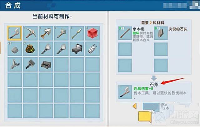 2.没有斧头的可以使用3小木棍和3尖锐的石头制作一把石斧,用于砍伐采集棉花。
