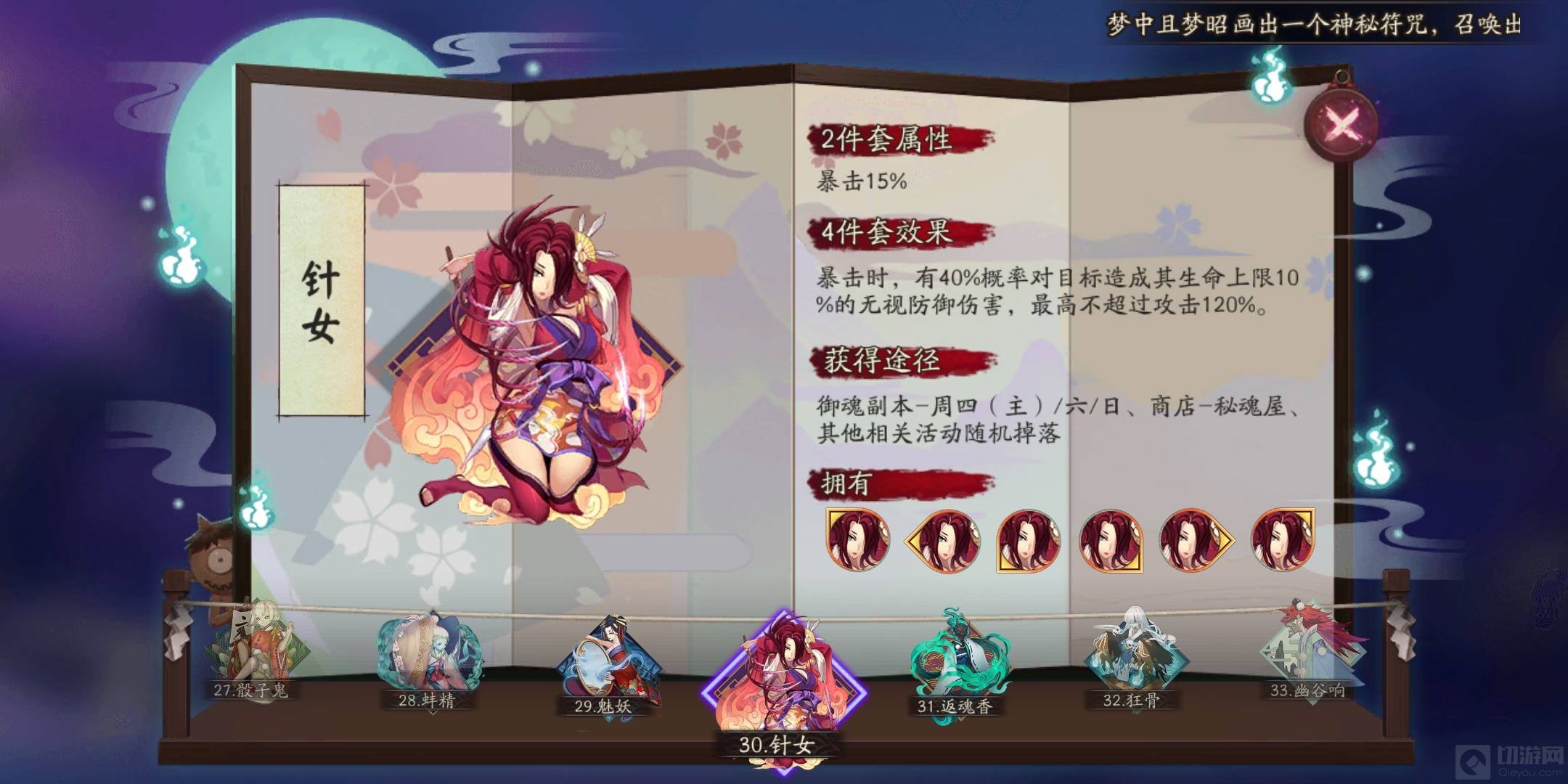 1,木魅(攻攻暴),木魅有几率削减敌方鬼火,配合sp青行灯技能,让敌方放不出技能。