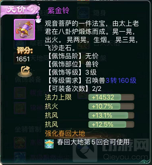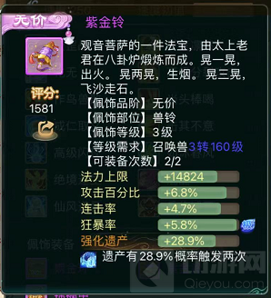 兽铃:固定属性条法力上限,其它属性根据召唤兽的法术类型选择强法属性,与兽环一致,新区同样可以选择速度属性。