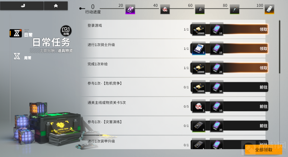 第二件事就是相关活动查阅啦,比如日常任务的领取,像什么进行1次骑士升级,1次补给这些还不是简简单单,So easy!