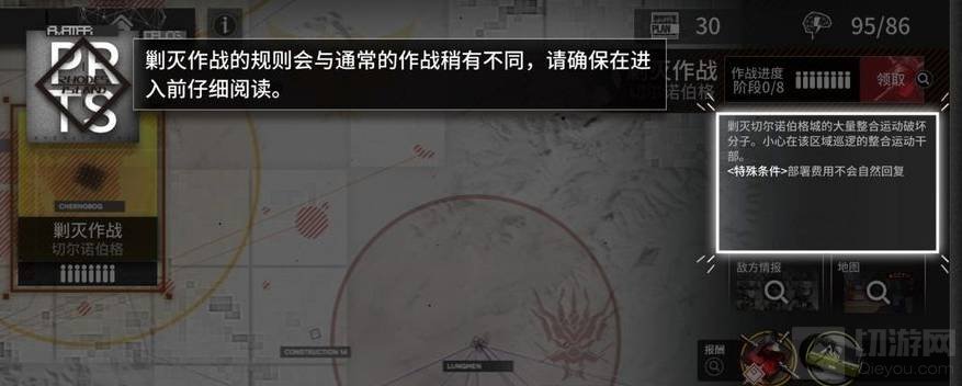2.在剿灭作战界面,我们下一步是选择一个作战的战场,其实相当于选择一个地图,剿灭作战的玩法规则其实是一样的,但是地图会有差异。
