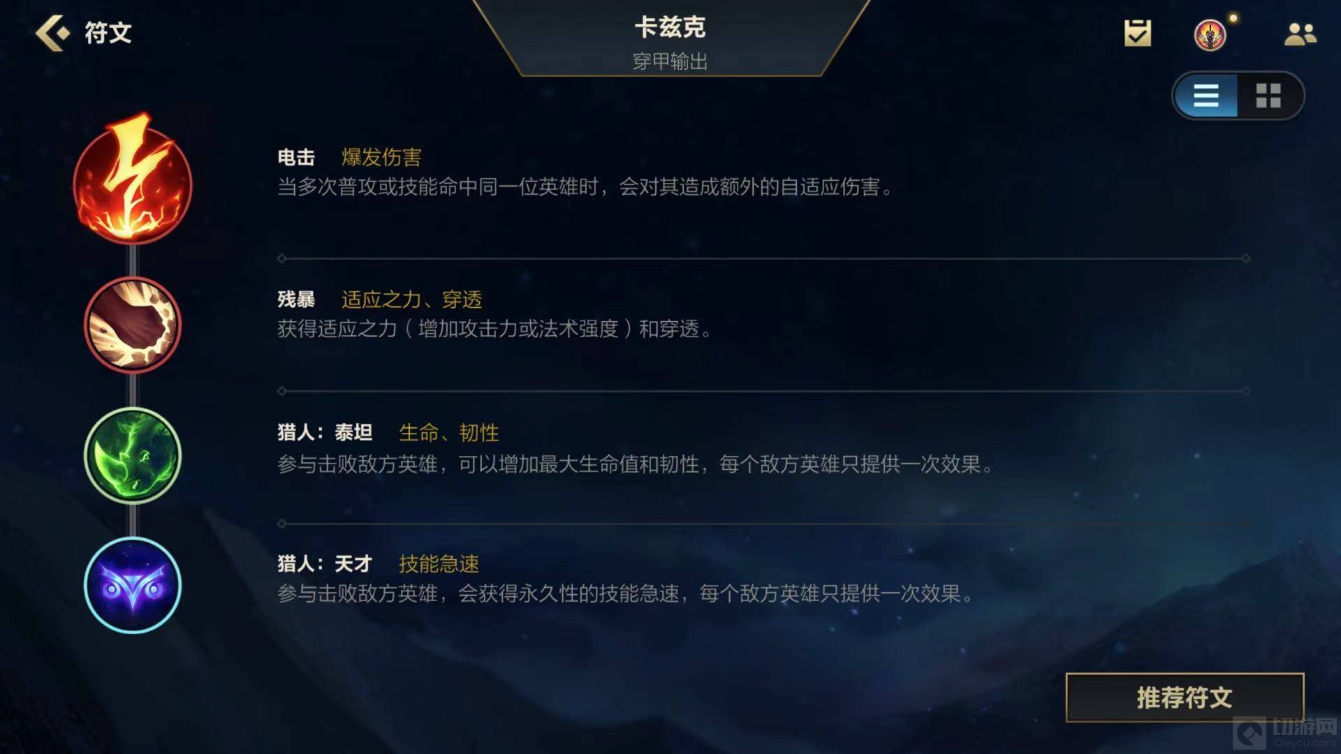 1)卡兹克这是一个刺客爆发型的英雄,凭借着被动无形威胁,抓人,反野是这个英雄常做的事,这个被动的技能是在对战敌方一个英雄时的伤害会有额外加成。所以在打法上要追求极致的输出,打完一套能秒掉人最好,如果秒不掉人就直接走,大多数玩家的螳螂都是用来收割的,初始时,螳螂的血量和双抗都比较低,所以不要被对面控到,被控制基本就可以手离开手机了。