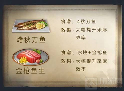 明日之后部分食谱通过食材的不同比例搭配,将会作出不同品质的料理,使用之后会有不同的效果加成。下面就和大家分享一下游戏中鱼类食谱以及不同食谱的加成效果有哪些。