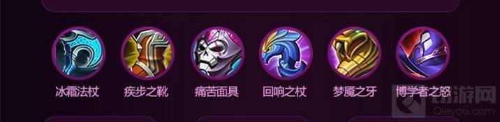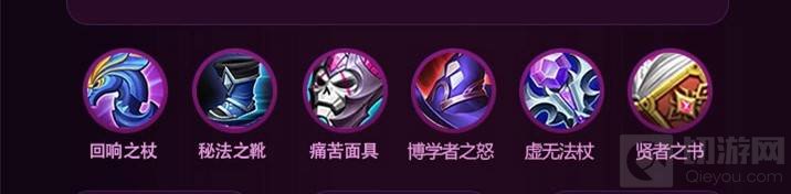 第一套:回响之杖 秘法之靴 痛苦面具 博学者之怒 虚无法杖 贤者之书,这套出装以输出为主,后期可以轻松秒杀任何人。