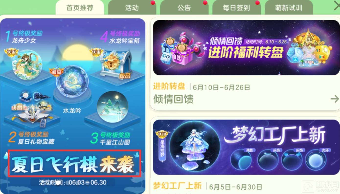 2,点击夏日飞行棋来袭,夏日飞行棋活动时间为6月3日至6月30日。