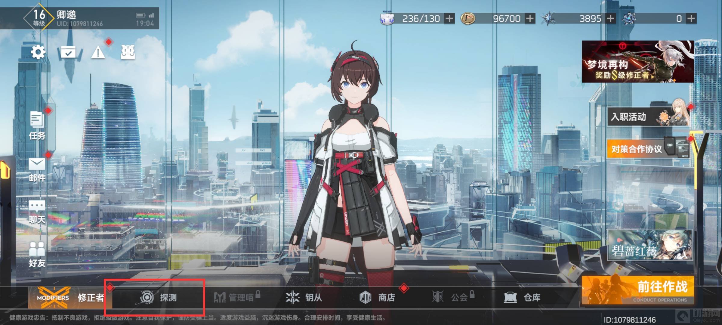 深空之眼权钥怎么获得?在游戏中有部分玩家对此还不太了解。接下来让为大家介绍一下吧。 深空之眼权钥获得方法 深空之眼中的权钥需要通过探测里抽取获得。 1、进入游戏后,在主界面点击左下角的探测。 2、