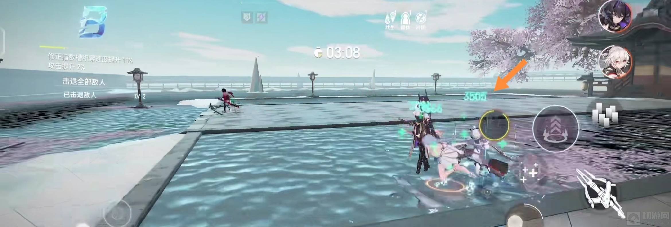 4、刻意的卡位,我们也不可避免吃到多个伤害。这个时候潮音就得及时回血,防止过快的死亡。