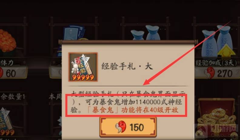 4. 弹出面板后,可以知道经验手札是为暴食鬼增添经验的,购买该手札后,点击使用即可。