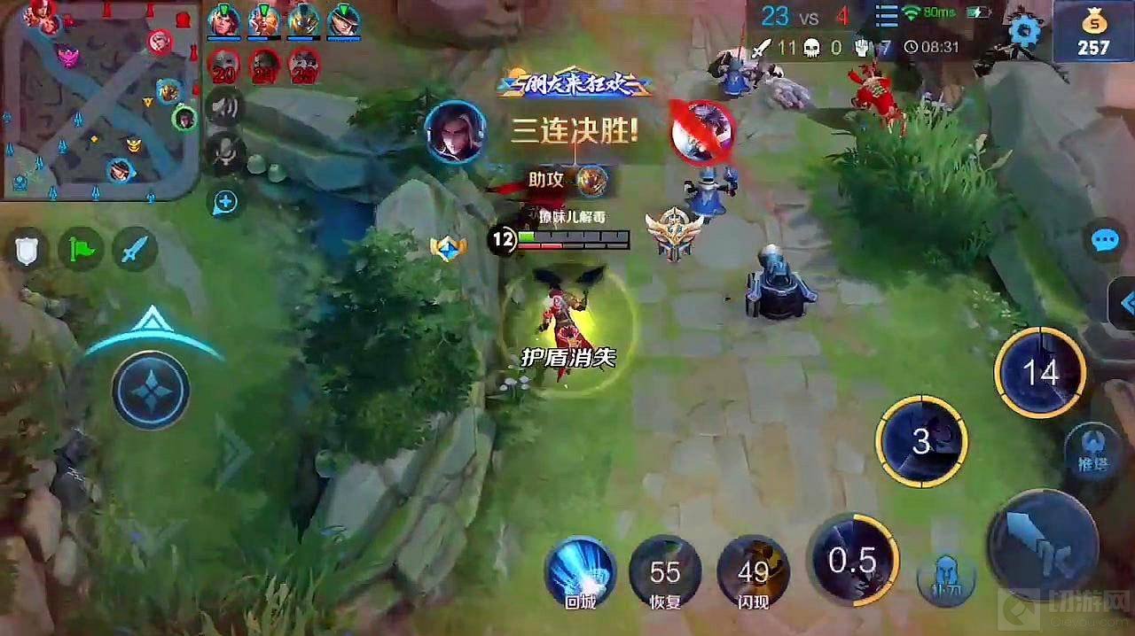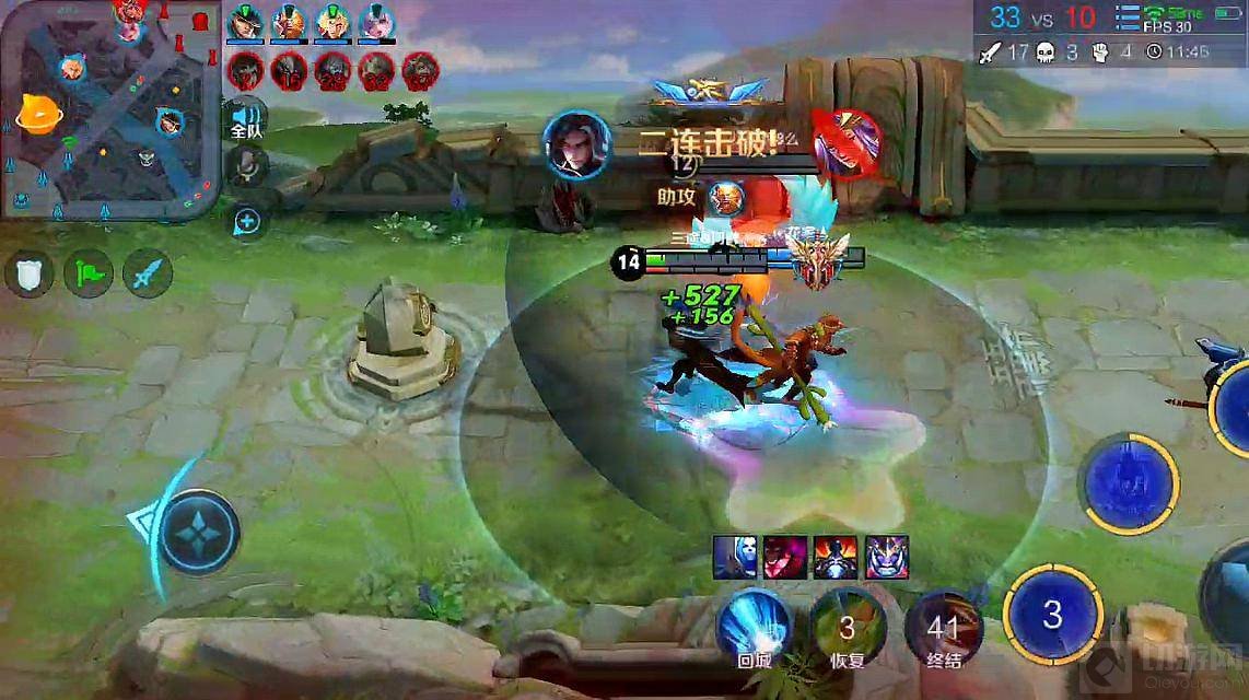 大招进场,二技能打出控制,随后慢慢收割敌人。