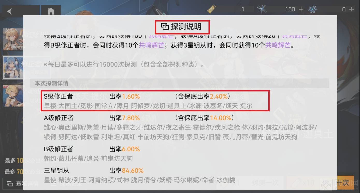 2、另外通过常规探测也能抽取到觅影角色,但出货的概率只有1.6%。
