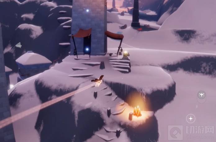 2、从滑雪赛道起点处继续往上走,在右侧有一个缆车机关,点亮激活下一阶段缆车。