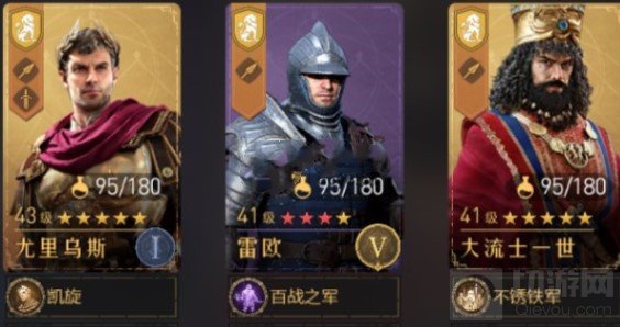 2.用三队打也可以,但主要是为了远程一次过,连击骑反击枪差不多,统帅枪凯撒换成雷欧吧,省资源,列奥尼达大流士也不用升太高,能抗一会就行,信物先主队升天赋,不要平均分配。