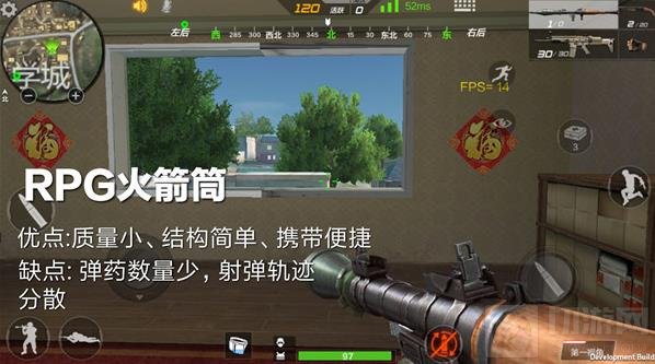 火箭筒质量小,杀伤力大,携带起来相当轻便。既不影响我们的活动,也可以给对面的敌人带来火力压制,在战略角度上说算是相当划算的选择。不过,相对于火箭筒强大的火力,单发一颗的载弹量是一个相当大的客观限制。若是使用它的话,我们最好把火箭筒用来炸毁敌方车辆和直升机上面,导弹的破甲效果可以快速摧毁载具,让待在里面的敌人体验一开始就结束的滋味。注意在房子或位置高的草地旁用火箭筒,这样瞄准载具的几率将会有所提高。