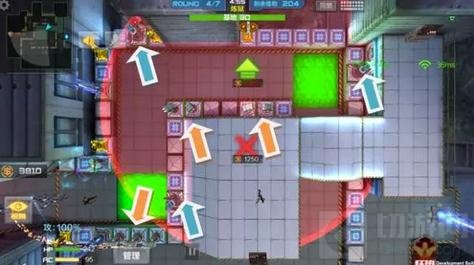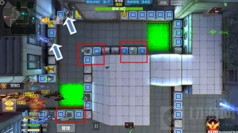 开局有2500,在1号位置放一个辐射塔1500,在2号位置放一个冰塔800,等有钱后,在3号位置放一个旋风,这样前期的防线就建造好了。