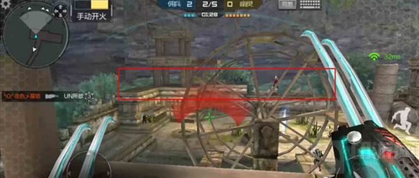 这个点位也不算很好,但是视野足够开阔,如果有两个或多个队友配合镇守的话,也不失为一个很好的杀敌位置。但是,队友必须默契配合,保护好对方,否则,两个人瞬间就over了!