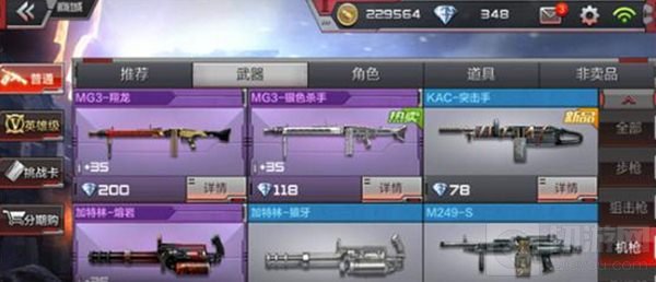 在每一个BOSS击杀后我们需要进行翻牌奖励,第一个牌是免费的,但是翻出来的东西要靠运气,如果缺少武器的玩家可以用30钻石来翻开全部,零件武器肯定会有的。在挑战巨人城的时候必不可少的是机枪武器,MG3、加特林、RPK都是机枪中的佼佼者,载弹多、射速快输出更给力,值得入手。