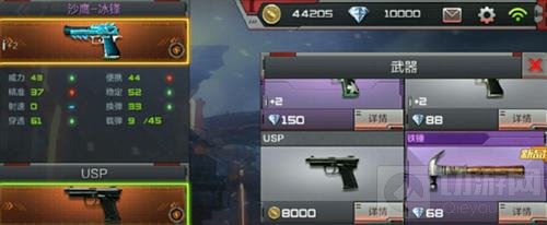 在与USP的对比中,沙鹰-冰锋属性依旧高出USP一大截,但USP作为最稳定的手枪果然是名不虚传,但威力较小,所以在实战中还是建议携带沙鹰系列手枪作为副武器。