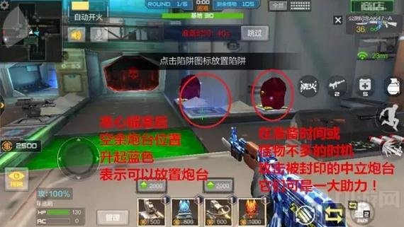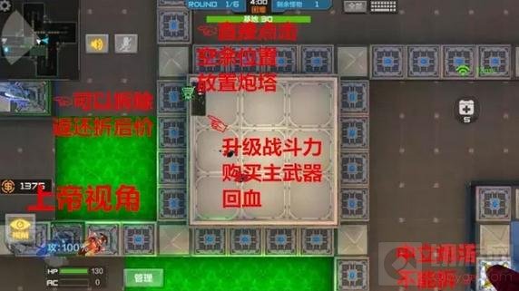 1、炮塔的位置摆放都是以自己为第一人称视角,只需要将准心对准未防止炮塔的位置,该位置此时会升起蓝色光芒,将选择的炮塔放入该位置。火线姐在这里提醒,使用界面上的上帝视角更加简单,只需要点击空余炮塔位置,便可任意点击炮塔放置。