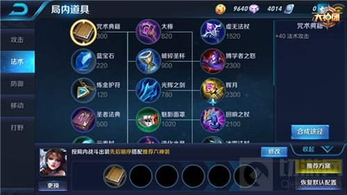 因为是1V1墨家机关道地图,尽管貂蝉的被动技能回血和1技能的伤害有所削弱,但并不是完全影响她的节奏。而且不需要考虑阵容因素,自然在装备上会选择暴力输出。貂蝉出门装选择咒术典籍来提高其在前期的输出能力,能在单挑中更占据优势,同时咒术典籍可以合成之后的核心装备,是非常重要的一个组件。