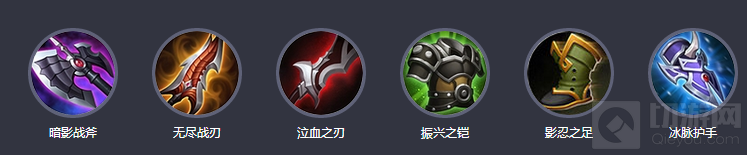 推荐出装:暗影战斧+无尽战刃+泣血之刃+振兴之铠+冰脉护手+影忍之足