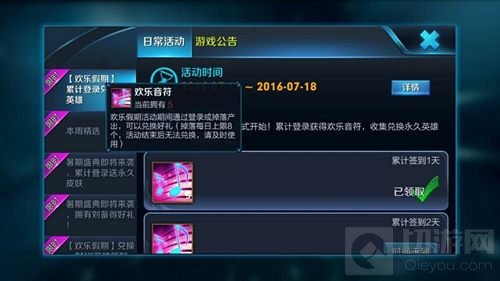 1.累计登录可以领取不同数量音符(7月12日~7月18日)