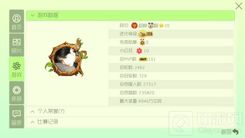 进入游戏主界面,点击左上方的头像→点击“游戏”图标,在这里里面就能看到每位玩家的段位、等级、传奇勋章、小红花以及总冠军数等等详细的情况,MVP是团队模式下,一场比赛的获胜队伍中,综合表现最好的玩家将获得MVP称号。要获得MVP,不仅仅是要看你拿到大球的时间有多长,你的球有多大,除了这两个因素之外,你的移动速度、吞噬数量之类的都是有计算进去的。