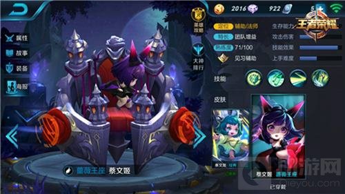 刚刚登场的可爱小萝莉,萌萌哒的造型一看就是个好辅助。一位释放技能时自带BGM的英雄。(哼!没有人能在我的BGM中打败我。)可能是新英雄的关系,在现在的高端局中登场率不是很高,但路人匹配中基本一场比赛两个蔡文姬。不管是路人还是大神都在练习蔡文姬。自身技能有回血有加成还有控制,大招开启后配合技能净化,还能用来切割战场。用不了多长时间,蔡文姬就会在排位中活跃起来。